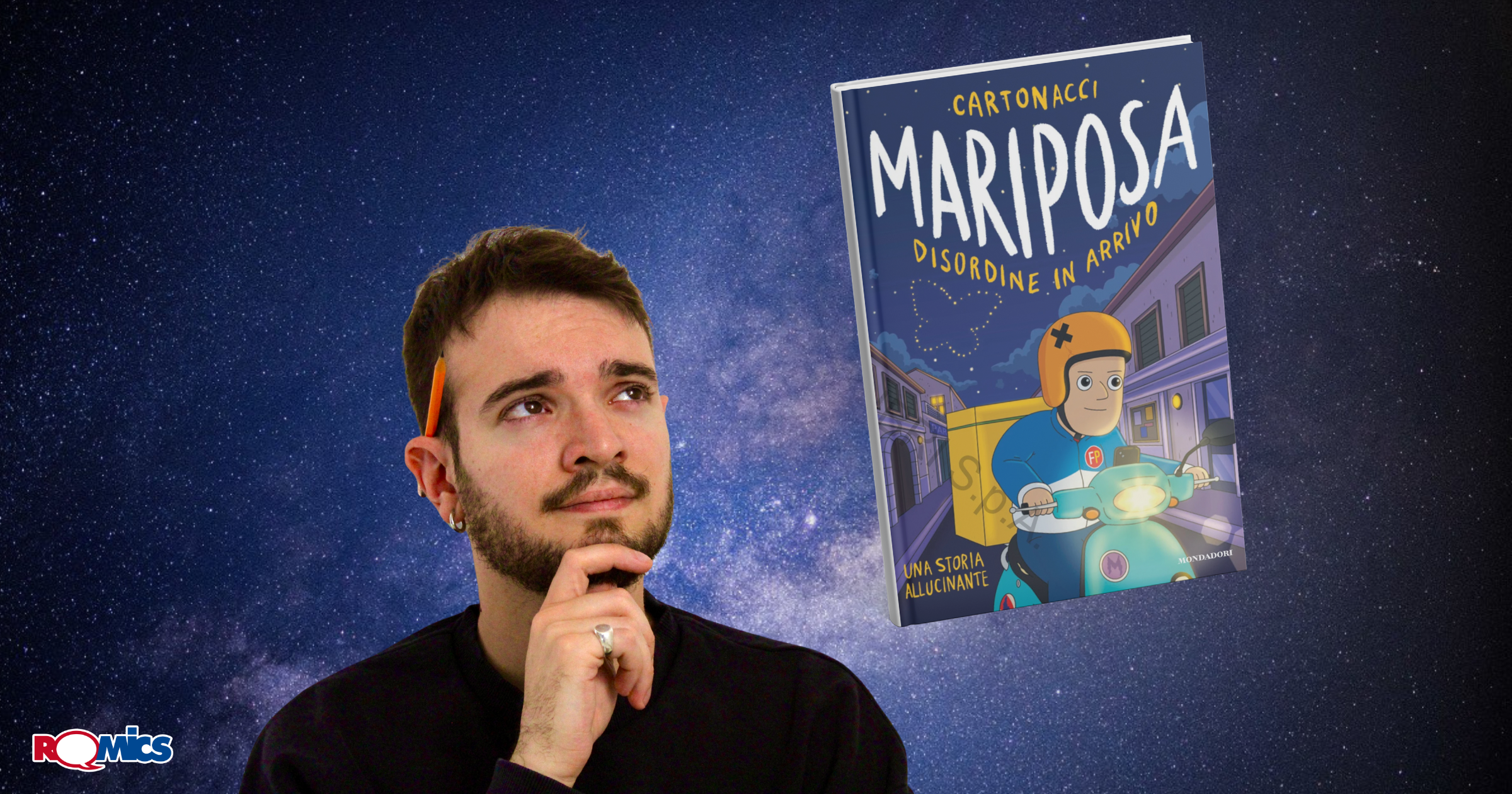 Con Mariposa, pubblicato da Mondadori Electa, porta su carta il suo stile inconfondibile, dando vita a una storia ricca di ritmo, humor e continui colpi di scena. Il protagonista è Luca, un rider determinato a diventare il migliore d’Italia: gli manca solo un ultimo sforzo, completare cinque consegne perfette e ottenere il massimo dei voti per vincere un nuovo scooter. Ma quello che sembra un traguardo a portata di mano prende una piega inaspettata quando entra in gioco una pizza molto particolare, la Mariposa, capace di trascinare chiunque, con un solo assaggio, in situazioni fuori dall’ordinario.
